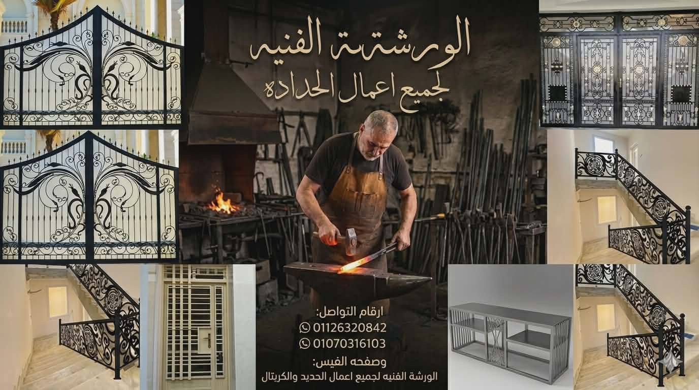 الورشة الفنية لجميع أنواع الحدادة وأعمال الحديد والكريتال