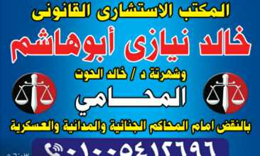 المكتب الاستشاري القانوني – د/ خالد نيازي أبو هاشم (الحوت) | محامي بالنقض والخبرات القانونية المتقدمة إذا كنت تبحث عن…